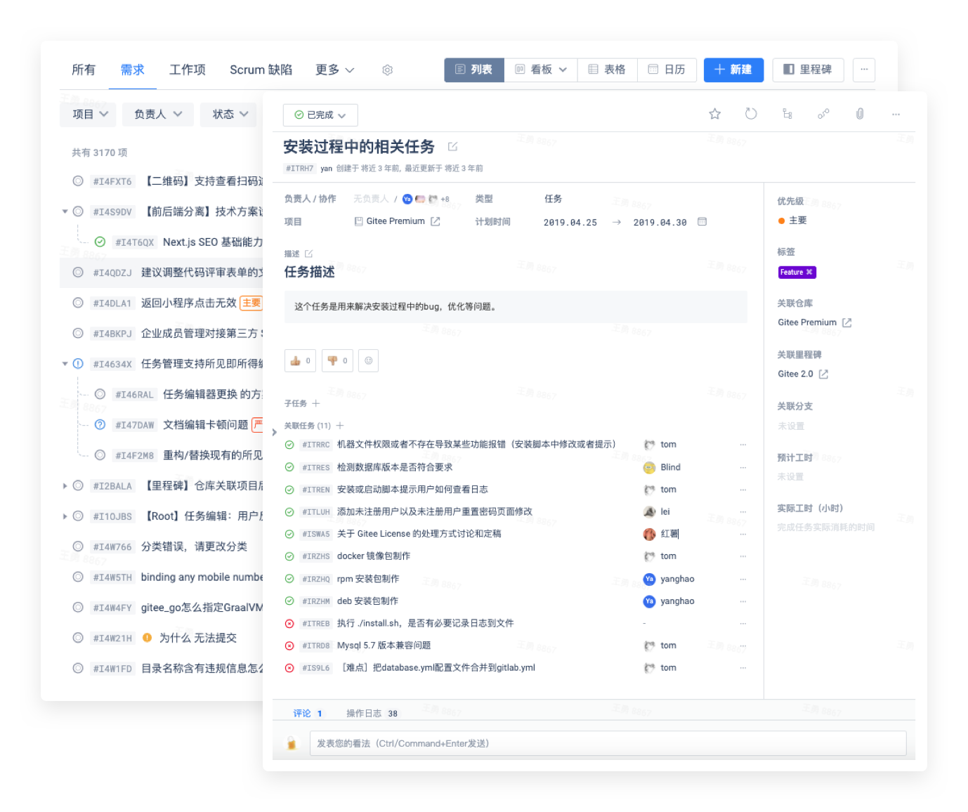 在 Gitee 专业版的全流程管理下,能够轻松实现“一条需求跟踪到底”。需求从产品侧提出后进入研发阶段后,可直接与相对应的代码评审关联,通过代码质量自动扫描后进入集成 Gitee Go 的自动化测试中,让整个研发流程行云流水,帮助团队更加聚焦到自身的产品质量上。