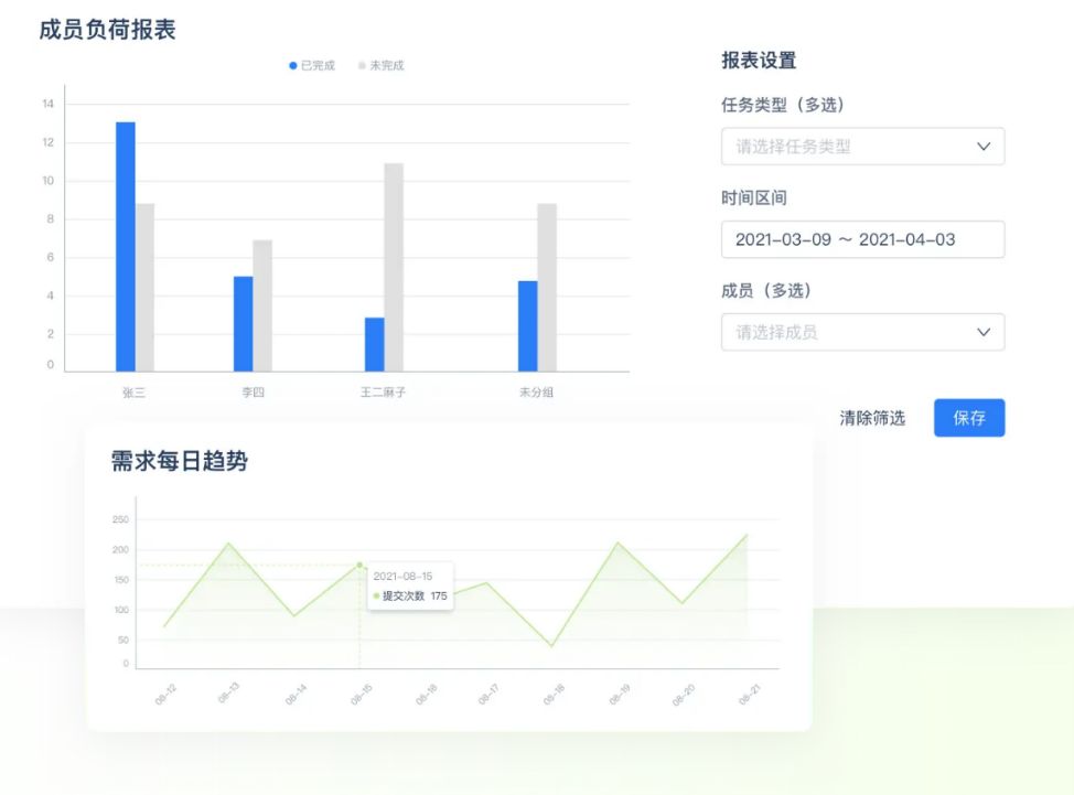 Gitee 专业版除了全流程 DevOps 落地外,研发效能的多维度可视化能够很好地解决这个问题。从项目到成员,从评审数量到代码行数,都可以通过可视化的方式应看尽看,让团队管理者充分了解项目进度,以便安排后续工作。
