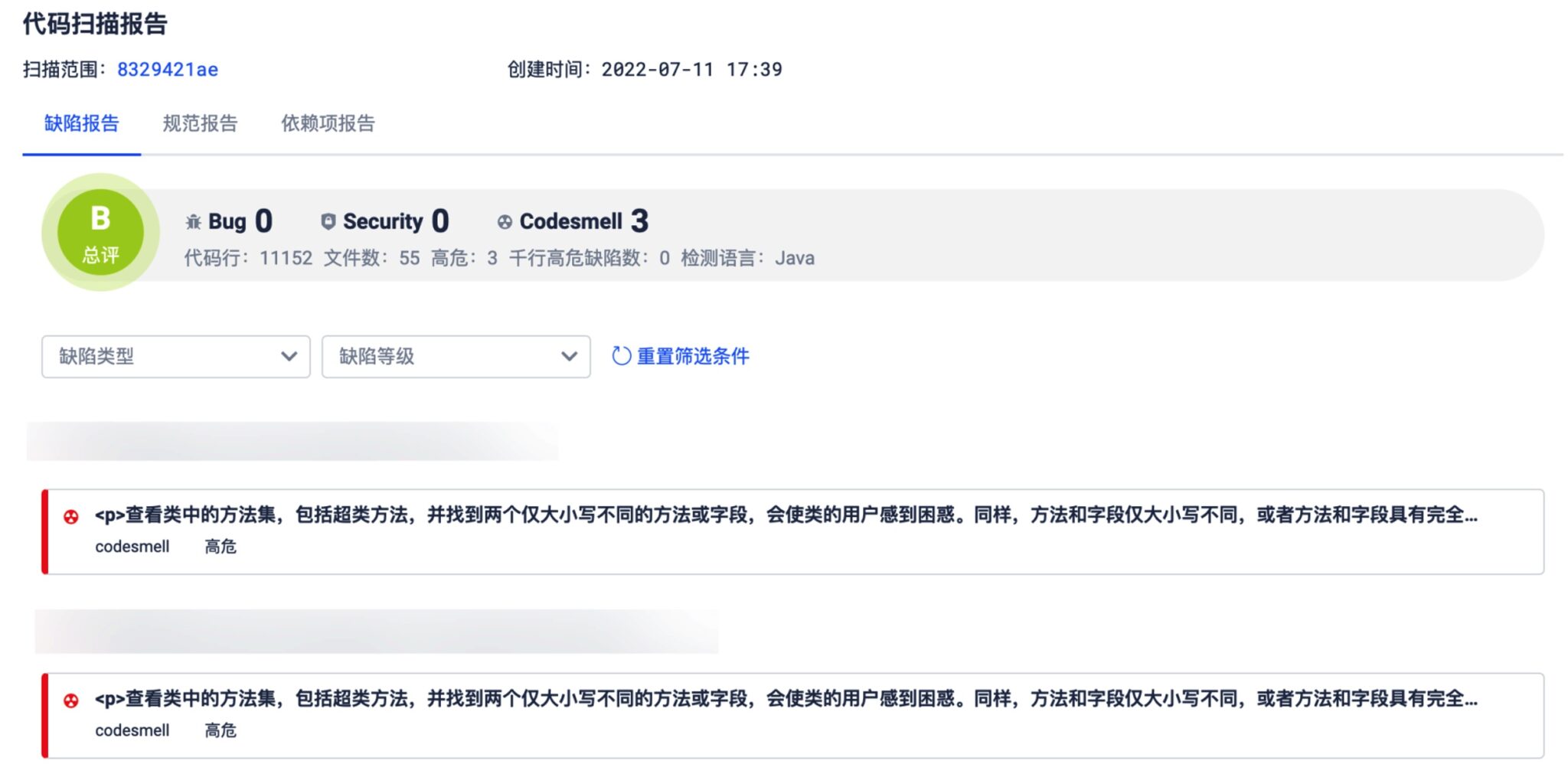 同时,在 Code Review 流程中加入自动化扫描工具 Gitee Scan,对开源漏洞 CVE、可维护性、重复代码等方面多重维度扫描分析,通过工具去反作用于组织内的代码质量规范,实现代码质量左移,进一步提高代码审查效率和产品质量。