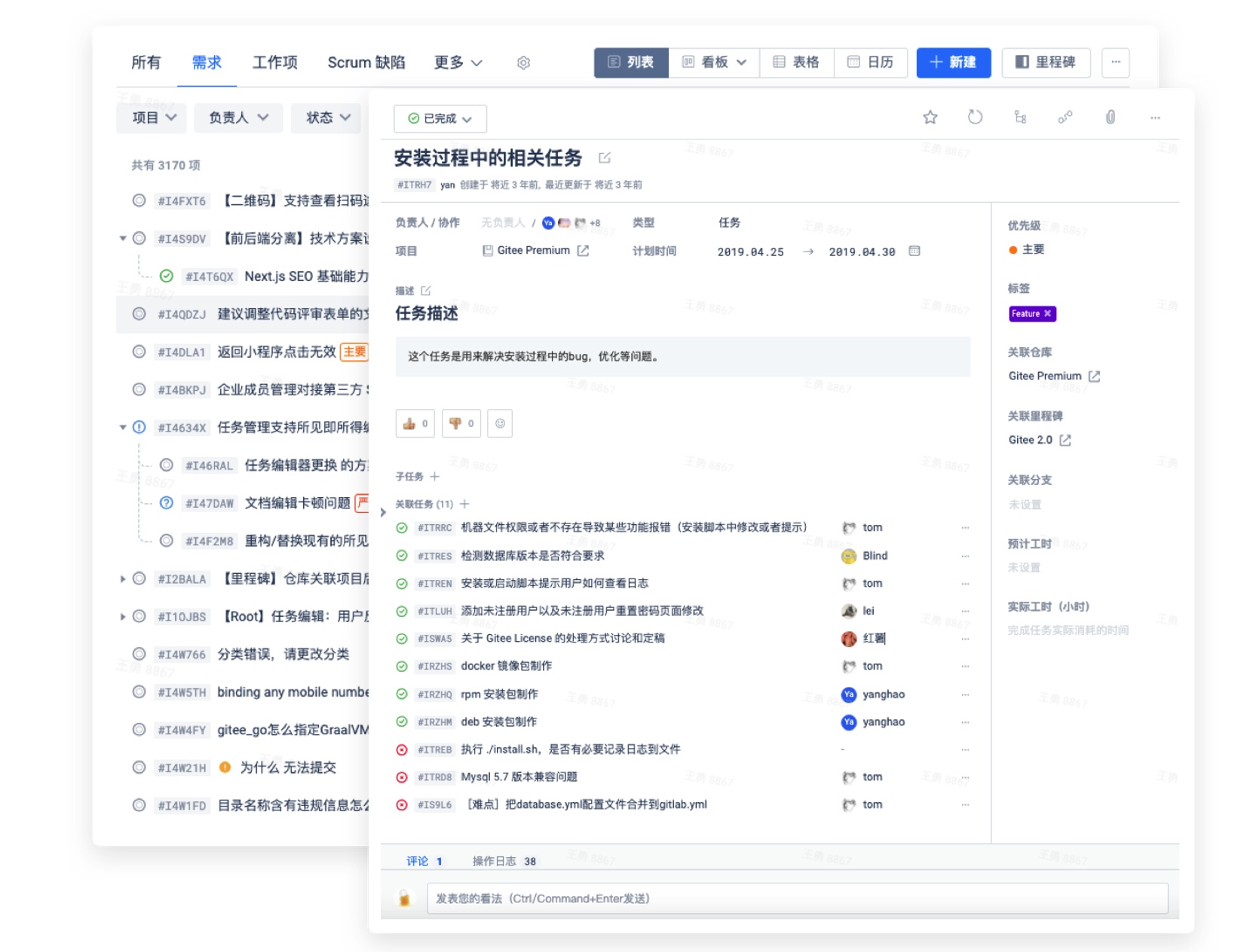 在 Gitee 专业版中,项目管理模块与代码管理模块紧密关联,提交代码即可变更任务状态,数据也从原来分散的状态变为现在统一平台的规范化管理,从需求到上线,做到一条任务跟踪到底。结合 Gitee 专业版提供的多种项目模板,覆盖全研发场景,上手简单,能在短时间内协助企业实现 DevOps 从理念到应用的落地。