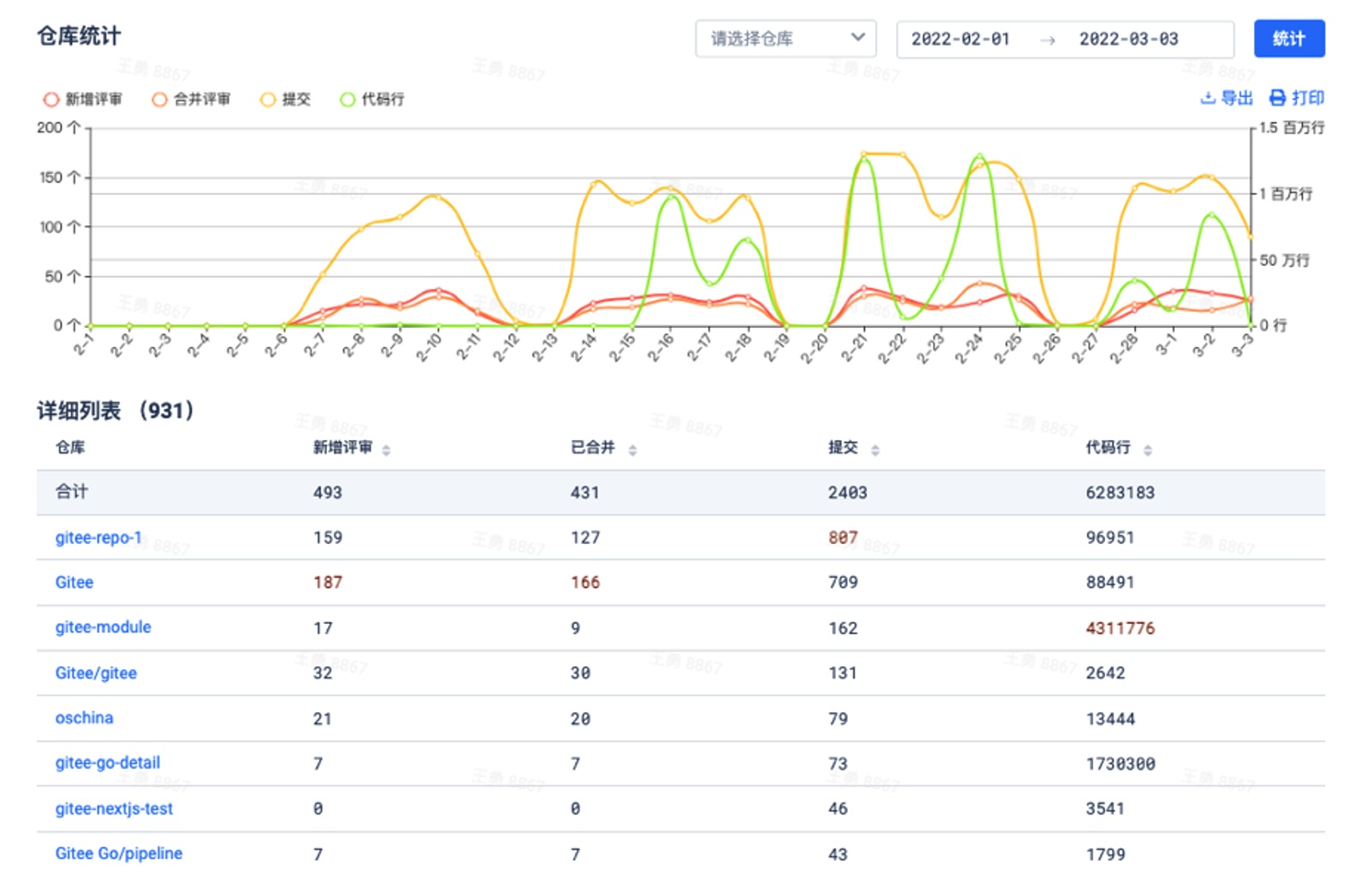 统一的平台打破了部门之间的数据壁垒,数据的顺滑流转让跨部门协作也更加通畅,高德智感研发团队在 Gitee 专业版中,对平台内部可视化统计的度量十分关注,在统一平台后,项目和成员的统计都可以在一个界面中集中展示并导出,让整体质量评估与实际情况贴合,数据更加真实。