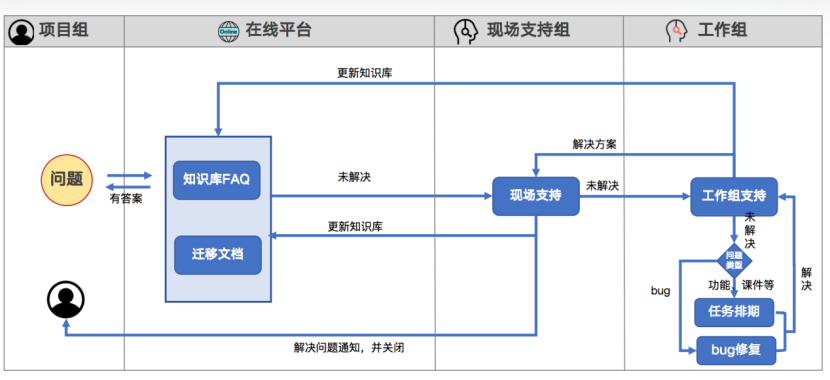 - 成立现场支持组,指导平台的使用、需求收集以及反馈;